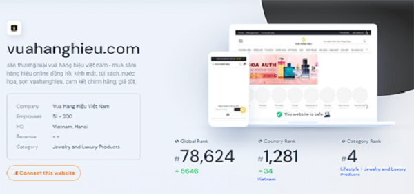 Vua Hàng Hiệu đứng thứ 4 tại Việt Nam về trang chuyên bán sản phẩm cao cấp. (Theo Similarweb)