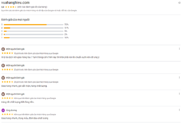 Nhiều khách hàng đánh giá tốt sau khi đã mua hàng trên Vua Hàng Hiệu. (Nguồn: Google Review)