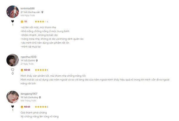 “Em này cũng có spf 50+ giúp bảo vệ da tối ưu khỏi ánh nắng mặt trời, được trang bị thêm ẩm để tránh da bị khô nữa. Bôi lên da khá mát và ẩm, nhưng mình thấy hơi nhờn rít 1 xíu, em này thì không lên tone như một số em khác, mình thấy dùng khá ổn, dung tích cũng khá lớn nữa nên cũng tiết kiệm.” - Linh Anh.