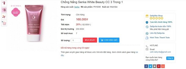 Chọn mua kem chống nắng Senka chính hãng tại Dailyvita.vn