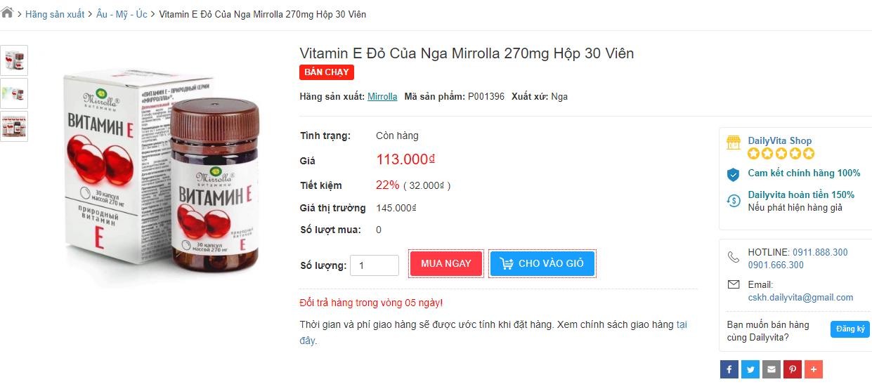 Vitamin e đỏ của Nga giá bao nhiêu?