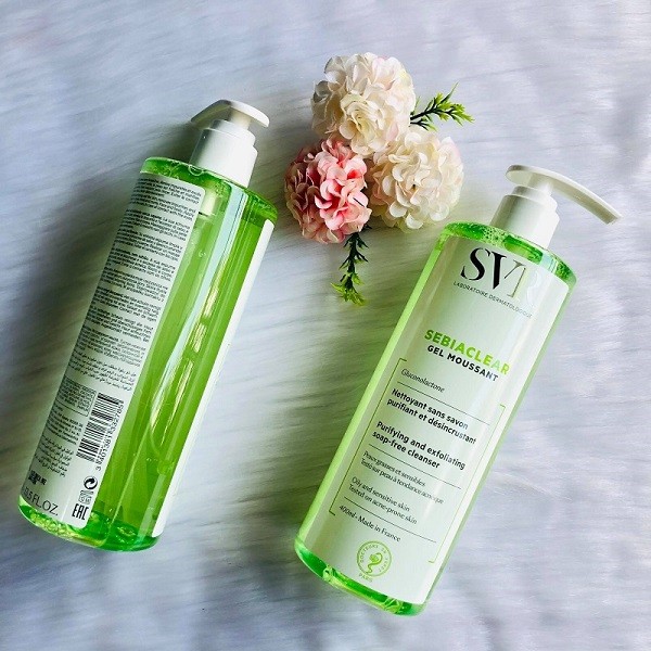 Dòng sữa rửa mặt SVR được khuyên dùng cho da mụn nên bảng thành phần chứa những dưỡng chất cực kỳ an toàn, không gây kích ứng hay nổi mẩn trên da. Sữa rửa mặt SVR có tác dụng đẩy mụn ra bên ngoài để làm sạch da, giúp giảm nhờn đáng kể.